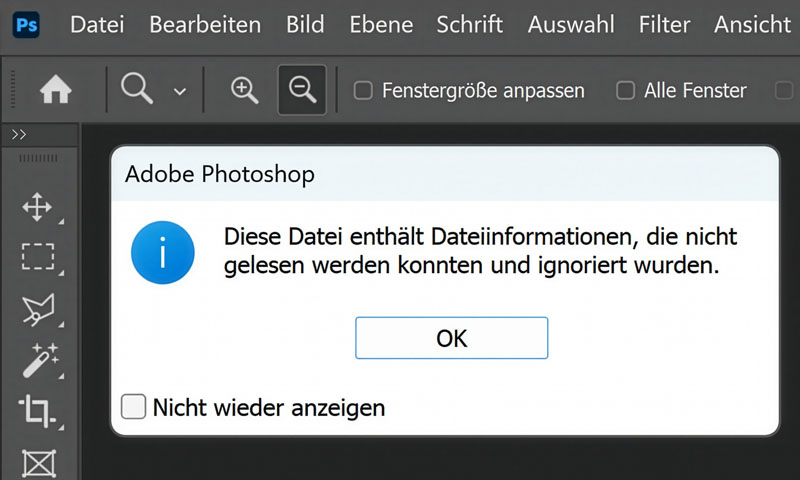 Ärgerlich: Adobe Photoshop weigert sich, IPTC Infos zu lesen, die mit anderen Programmen kompatibel sind.