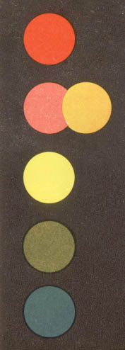 die hohe Gelb-Rot-Empfindlichkeit fehlt. 2. Daß Gelb und