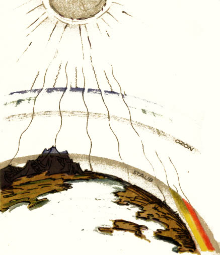 entsteht das Himmelsblau und das Abendrot? (Siehe die Zeichnung a. d. nächste Seite.) Die Farben der Atmosphäre