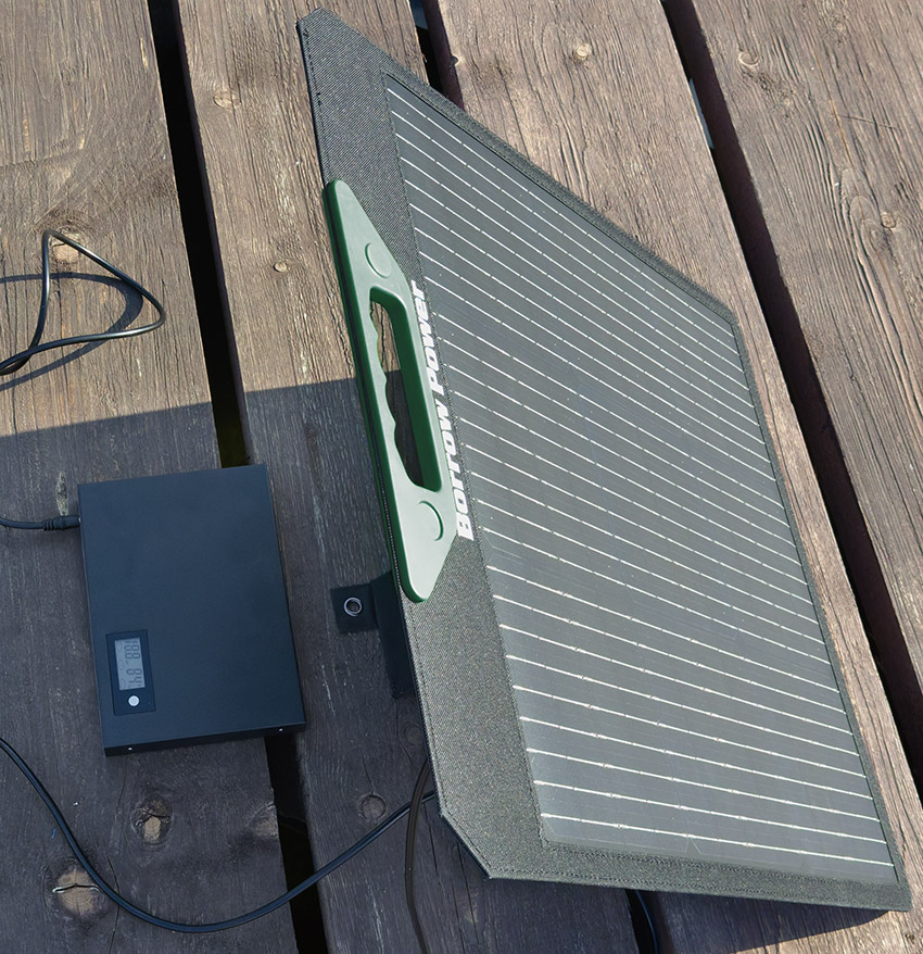 Die XTPower XT-75000 an einem Borrow Power Solarpanel mit 40 Watt. An einem sonnigen Nachmittag Mitte Mai liefert es etwa 20 Watt. Bei hochstehender Sonne werden maximal 28 Watt am Eingang der Powerstation gemessen. Ein Teil der Energie geht vermutlich im Laderegler verloren, weshalb es empfehlenswert ist, ein größeres Solarpanel mit 60 bis 100 Watt zu verwenden. Ein noch größeres Panel bringt hingegen wenig Vorteile, da der DC-Eingang der XTPower XT-75000 maximal mit 80 Watt geladen werden kann. Wenn das Setup kompakt bleiben soll, wäre ein 60 Watt Solarpanel eine gute Option.