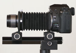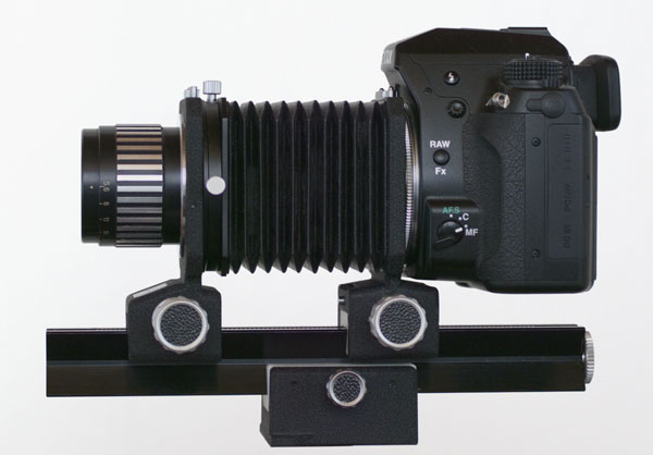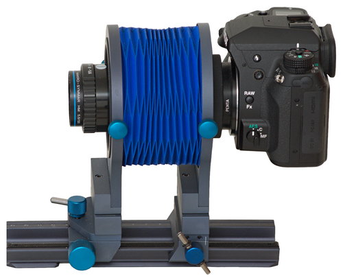 Der Balgen wird auf dem Makroschlitten vor und zurück bewegt.