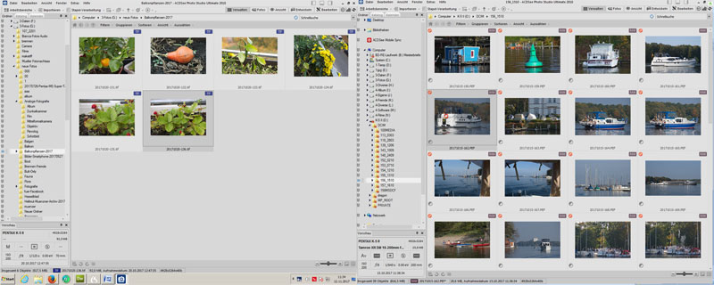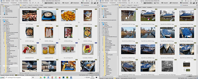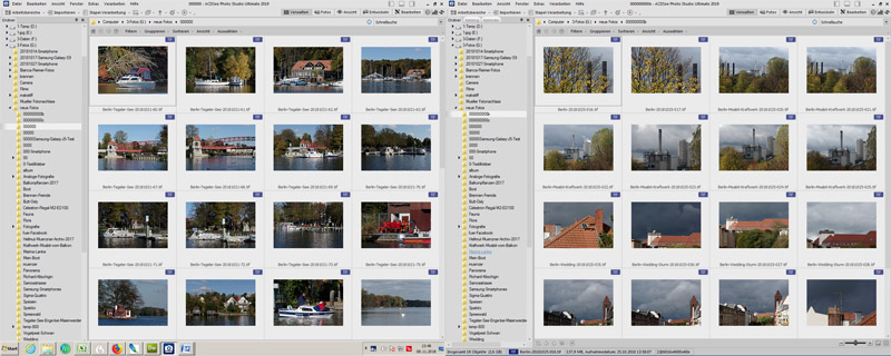 ACDSee Photo Studio Ultimate 19. Zweimal geöffnet mit Ansicht der Bilder in verschiedenen Ordnern. Mit zwei Monitoren ist das eine angenehme Unterstützung zum Sortieren und Verwalten.