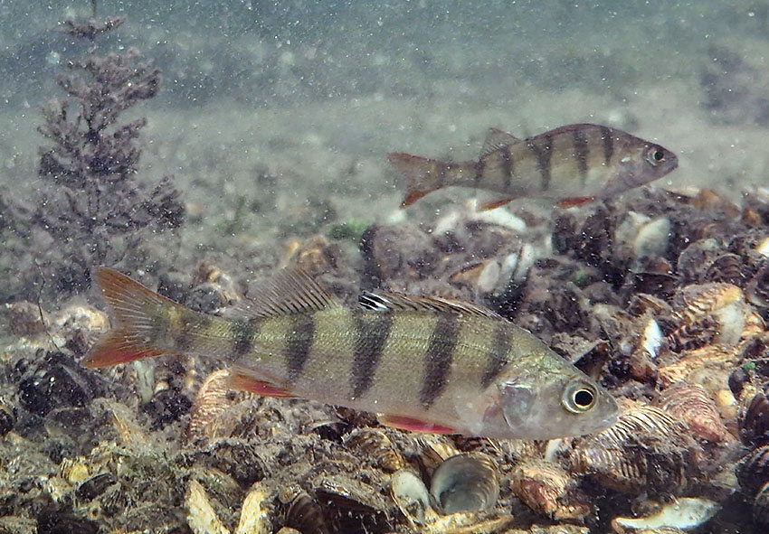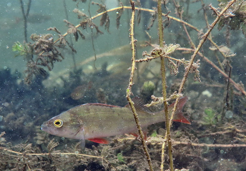 2022. Barsche im Tegeler See. Einzelbild aus einem 8K Video.